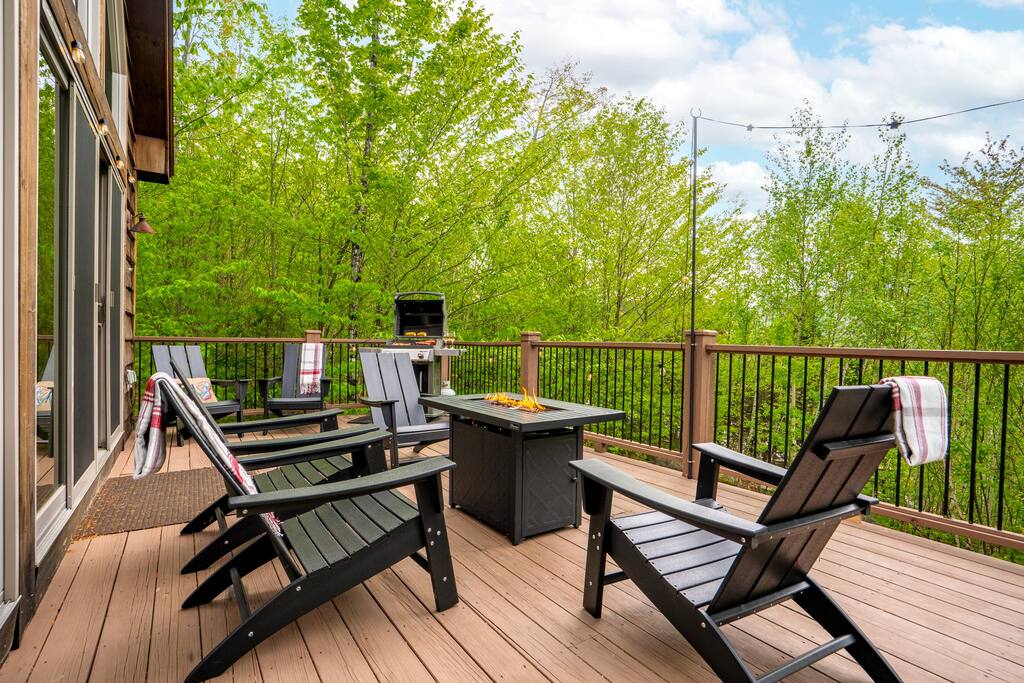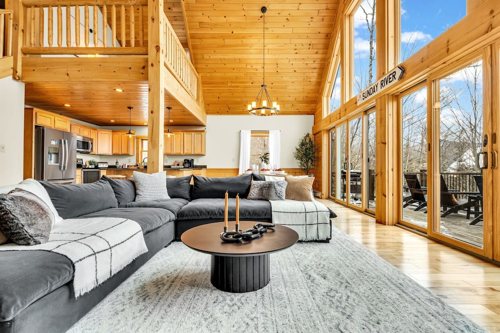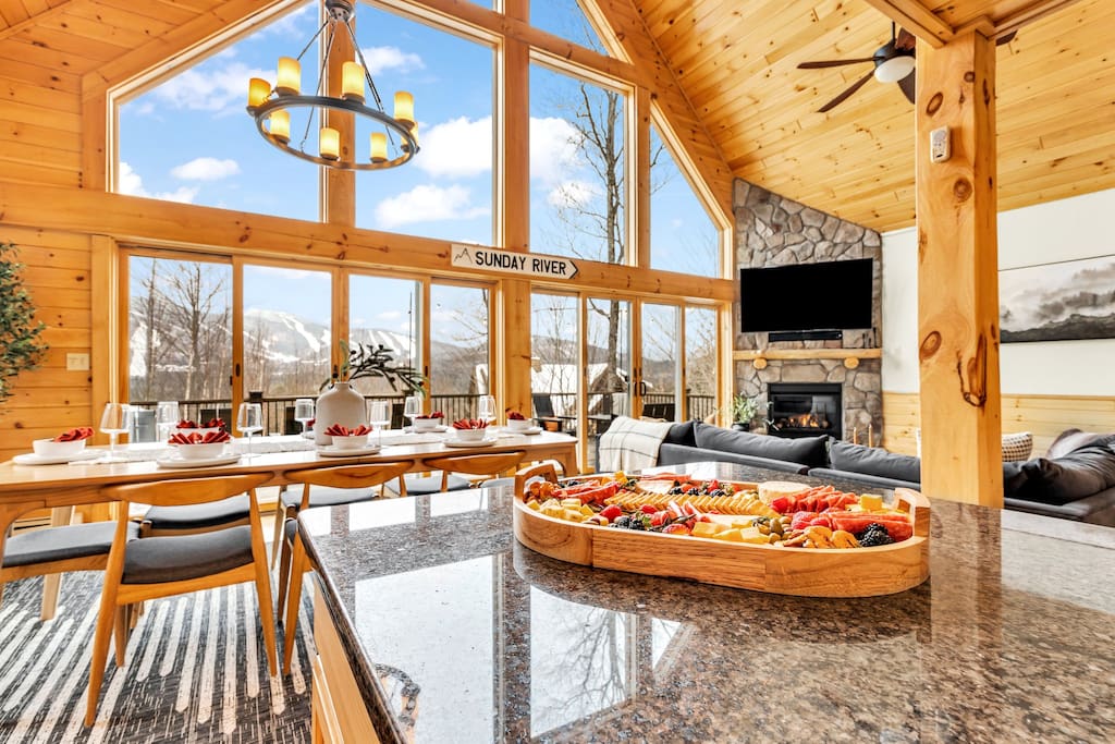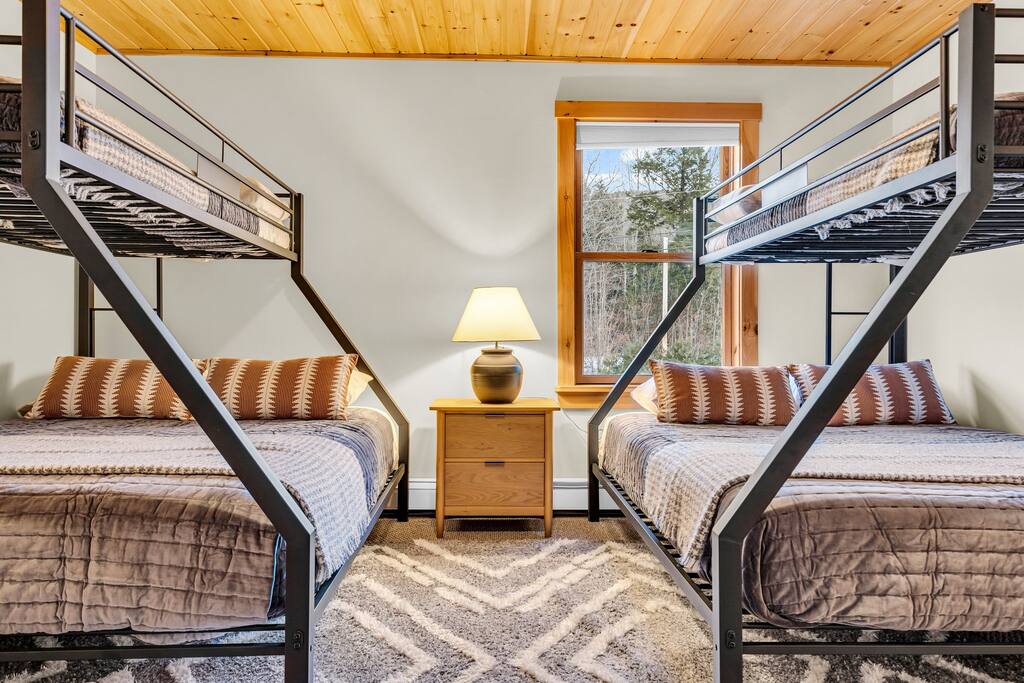 ✨ Why Stay Here? From the moment you arrive, Sunday River Escape delivers comfort, style, and adventure. With a massive hot tub, self check-in, and space for 16+, it’s the perfect getaway for families, friends, and groups. 🌄Your Perfect Day Begins and Ends Here: 🌞Morning: Wake up to the stunning views in a master suite with panoramic windows, followed by a hearty breakfast in our fully equipped kitchen featuring luxury appliances like an electric range and a beverage refrigerator. 🌌Afternoon: Explore Sunday River Ski Resort or relax in our game room with a variety of entertainment options. 🌙Evening: Unwind with high-speed Wi-Fi and various gaming consoles or a quiet evening by the roaring fireplace in the spacious living room. 🏡Your Home Away From Home Offers: Space for 16+ Guests: Comfort and privacy with special touches in every corner. Amenities Galore: From high-speed internet to a washer and dryer, plush linens, and premium toiletries. ✦ Accommodates 16+; 5 bedrooms with 1 king bed, 2 queen beds, and 2 queen-sized bunk beds (Queen below and twin on top) ✦ 4 bathrooms, including luxurious fittings and a bathroom with a king-size bed ensuite ✦ Fully equipped kitchen with luxury appliances, including a beverage refrigerator, electric range, toaster, dishwasher, and microwave ✦ Living Areas: Spacious living room with a gas fireplace and floor-to-ceiling windows offering mountain views ✦ Dining Setup: Open plan layout adjacent to the kitchen with ample seating ✦ Outdoor Spaces: Deck with mountain views and access to a private hot tub ✦ Game room with Foosball, Air hockey, board games, and a Nintendo Switch ✦ High-speed Wi-Fi and various entertainment options 🛌 Bedrooms ➤ 5 spacious bedrooms designed for comfort: ➤ Master Suite: King bed, ensuite bath, mountain views ➤ Second Level: Queen bedroom + bunk room (2 twin-over-queen bunks) ➤ Lower Level: Two queen bedrooms with easy access to the game room & hot tub 🚿 BATHROOMS Our chalet includes four beautifully appointed bathrooms: ➤Master Bathroom: Luxurious fittings, walk-in shower, and ample natural light ➤Additional Bathrooms: One on the main level, one on the second level, and one on the lower level, all featuring modern amenities ❤️ Guest Reviews ⭐️⭐️⭐️⭐️⭐️ ✨“Great house, just minutes from Sunday River. Amazing space for families, with plenty of room and stunning views.” – Robert ✨“Beautiful home with lots of entertainment inside. Perfect for relaxing and bonding.” – Amanda ✨“Cozy, spacious, and so close to the mountain. The hot tub and game room made it perfect. Can’t wait to come back!” – Samantha 🍴 Kitchen, Dining & Living ➤ Fully equipped kitchen with high-end appliances (electric range, beverage fridge, dishwasher, microwave) ➤ Large dining area with mountain views, perfect for group meals ➤ Spacious living room with floor-to-ceiling windows and a cozy gas fireplace 🎮 Game Room ➤ Foosball, air hockey, board games & Nintendo Switch ➤ Full bar area with fridge ➤ Comfy seating for movie nights or hangouts ★OUTSIDE SPACE★ ➤The chalet's outdoor spaces are perfect for enjoying the natural beauty of Newry! ➤The deck off of the main level of the house offers breathtaking mountain views and a cozy firepit to gather around! ➤On the lower level terrace, you will find our luxurious hot tub offering a relaxing soak with a view after a day of skiing or hiking! As well as another firepit where you can build your own fire and enjoy marshmallows under the stars with the family! ✅ Amenities ⭐️ Sleeps 16+ guests ⭐️ High-speed Wi-Fi & streaming TV ⭐️ Washer & dryer ⭐️ Plush linens & premium toiletries ⭐️ Central heating & gas fireplace ⭐️ Self check-in for easy arrival 🏡 House Rules ➤ Check-in after 4:00 PM | Checkout before 11:00 AM ➤ Pets allowed ($125 per pet – inquire for breeds) ➤ No smoking indoors ➤ Primary renter must be 25+ years old and present during stay (valid ID required). No third-party bookings. ➤ Minimum Age Requirement: 25+ To book this property, the primary renter must be at least 25 years old. The person booking must be present during the stay and will be required to provide valid government-issued ID upon request. We do not allow third-party bookings. We reserve the right to cancel any reservation that does not meet this requirement. This policy is strictly enforced to help ensure the comfort, safety, and respect of our home, neighbors, and community.