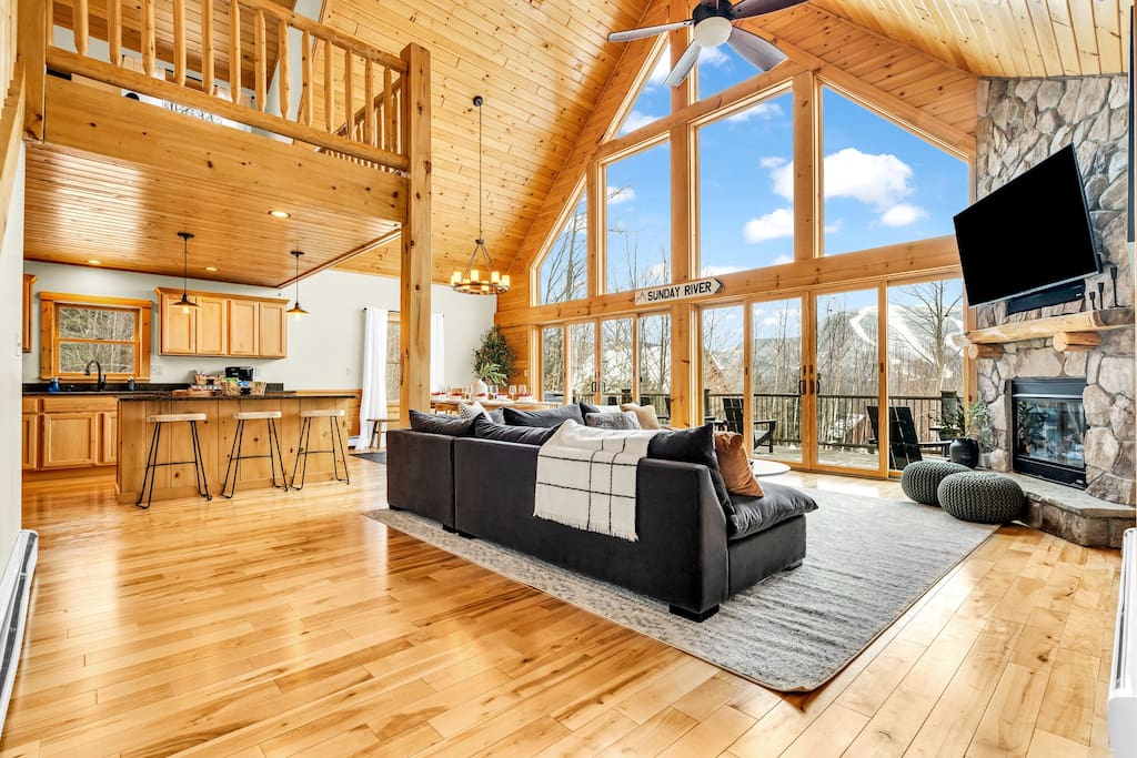 3 min to Sunday River w/ Views, Game room, Hot tub
