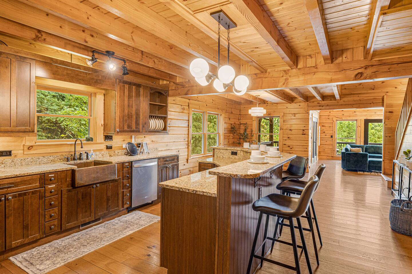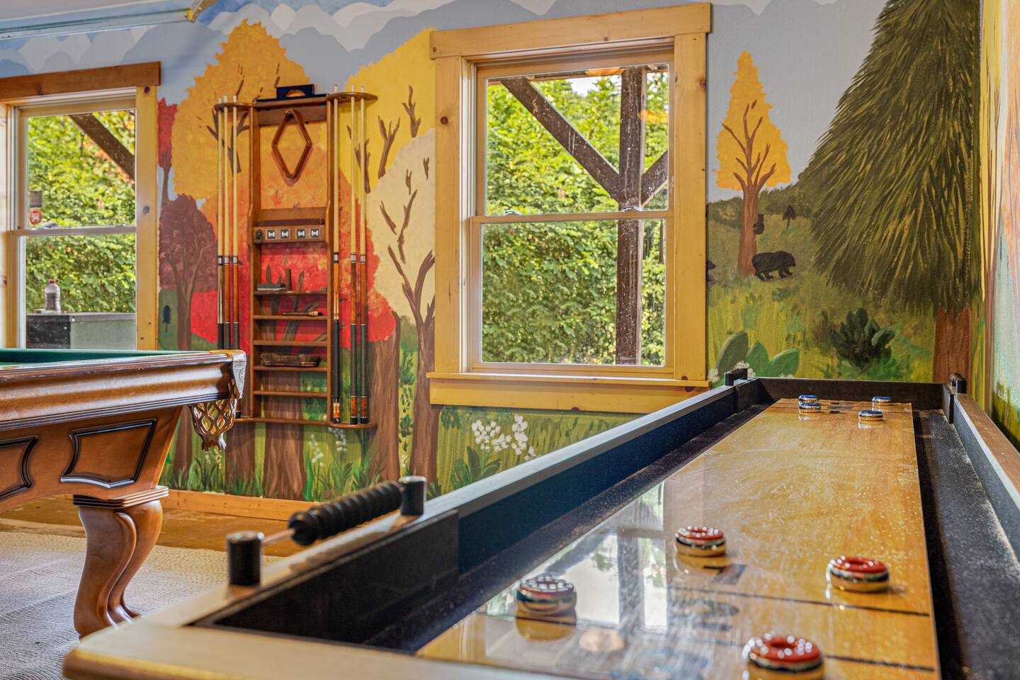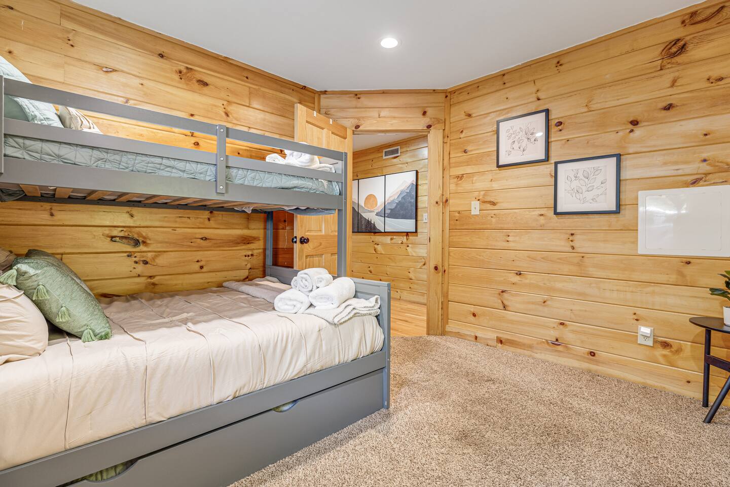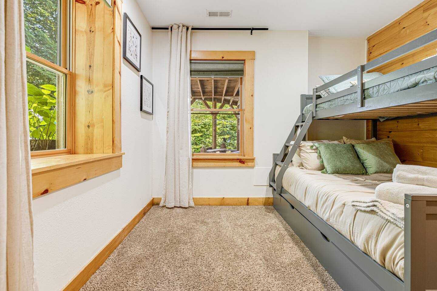 THE SPACE 🏔 PRIVATE MOUNTAIN GETAWAY WITH IDEAL LOCATION Enjoy the beauty of the Blue Ridge Mountains from every window in this luxurious, newly redecorated large wood cabin. The Catawba Falls Lodge delivers: ➤TWO LARGE HOT TUBS spread out in one of two hot tubs. Make one for kids and one for adults OR one for ladies and one for gents OR however you want to divvy up your group in this mountain paradise! ➤SECLUDED & SCENIC: Ultimate privacy with breathtaking mountain views. Please note there is a well-paved but very steep road to get to these spectacular views. Four-wheel drive is NOT necessary, but you will want to gear down before starting your ascent. ➤WATERFALL TRAILS MINUTES FROM YOUR DOORSTEP: Private community trail access to Upper Catawba Falls, Stairstep Falls, and Hemlock Falls ➤IDEAL LOCATION FOR EXPLORING NEARBY TOWNS AND HIKING: Just 20 minutes to Black Mountain & Old Fort, 35 minutes to Asheville, and near Blue Ridge Parkway, Black Mountain and Montreat area hiking like: ✦Evans Knob Trail (3.9 mi, hard) – Rewarding mountain views ✦Point Lookout Trail (7.2 mi, moderate) – A scenic trail perfect for cycling or nature walks, following an old railroad route. ✦Montreat Rainbow Road Trail (3.4 mi, moderate) – A picturesque hike featuring rolling hills and seasonal wildflowers. ✦Bearwallow Mountain Trail (2 mi, moderate) – A quick summit hike with a 360-degree view of the Blue Ridge Mountains. 🏡 SPACIOUS & GROUP-FRIENDLY | PERFECT FOR GATHERINGS With 5 bedrooms and a multitude of bedding configurations, multiple living areas, and an open-concept design, Catawba Falls Lodge is built for comfort, connection, and privacy. Whether you're traveling with friends, extended family, or multiple families, there’s plenty of space for everyone to spread out and enjoy their stay. ➤16 GUESTS SLEEPING ARRANGEMENTS – The lodge can accommodate up to 16 guests in different sleeping arrangements. ➤EXPANSIVE MAIN LIVING AREA – Cozy up on plush seating while taking in floor-to-ceiling mountain views ➤OPEN-CONCEPT DESIGN – Seamless flow between the living room, dining area, and fully equipped kitchen ➤MULTIPLE PRIVATE SLEEPING SPACES – Three ensuite bedrooms + additional spacious rooms with flexible sleeping arrangements ➤LARGE DINING AREA – Gather around the dining table for 13+ guests to share meals and memories ➤PRIVATE UPSTAIRS & DOWNSTAIRS SPACES – Perfect for multi-generational families or guests who prefer separate areas ➤OUTDOOR GATHERING SPOTS – Expansive decks, lots of outdoor furniture, a fire pit, and a hot tub offer more places to relax and reconnect 🧑🤝🧑FAMILY & KID-FRIENDLY ➤GAME ROOM – Pool table, board games, and cozy seating ➤FLEXIBLE SLEEPING SPACES – Queen and twin combos for parents and kids, bunk room for little adventurers! ➤ROLLAWAY BEDS FOR EXTRA CONVENIENCE – Ideal for families who need extra sleeping space ➤EXPANSIVE OUTDOOR SPACE – Safe areas for kids to explore + fire pit for family gatherings 🏡 SPACIOUS BEDROOMS & ENSUITE BATHS | VARIED SLEEPING ARRANGEMENTS With five thoughtfully designed bedrooms and multiple sleeping configurations, Catawba Falls Lodge ensures privacy, comfort, and flexibility for multi-generational families, large groups, and kids. ❤️DOWNSTAIRS ✦BEDROOM 1 – Queen and twin bed (twin mattress in the closet) ✦Bedroom 2 – BUNK ROOM (trundle bed) two Twin bed + queen ❤️MAINLEVEL ✦BEDROOM 3 – King bed + ensuite bathroom ❤️UPSTAIRS ✦BEDROOM 4 – King + en-suite bathroom ✦BEDROOM 5 - Queen + Twin + en-suite Bathroom ✦+ 2 Rollaway bed 🍽️ MODERN KITCHEN & DINING SPACES | PERFECT FOR GATHERINGS At Catawba Falls Lodge, the kitchen and dining areas are designed to bring people together. Whether you're cooking a gourmet meal, sharing a cozy breakfast, or dining under the stars, this space offers the perfect blend of modern convenience and rustic charm. FULLY EQUIPPED KITCHEN | COOK & SOCIALIZE ✦SPACIOUS, OPEN-CONCEPT KITCHEN – The heart of the home, designed for easy cooking and entertaining ✦LARGE ISLAND & BAR SEATING – Perfect for meal prep, casual dining, and gathering with loved ones ✦GRANITE COUNTERTOPS & NATURAL WOOD CABINETRY – A beautiful mix of rustic charm and modern elegance ✦STAINLESS STEEL APPLIANCES – High-end gas stove, oven, microwave, refrigerator, and dishwasher ✦COFFEE STATION – Includes a Keurig, French press, and a selection of coffee essentials ✦FULLY STOCKED WITH COOKWARE – Everything you need, including pots, pans, utensils, oil, and seasonings 🍷 RUSTIC DINING SPACES | INDOOR & OUTDOOR OPTIONS ✦EXPANSIVE INDOOR SEATING – Seats 13+ guests, making it ideal for large groups ✦OUTDOOR DINING AREA – Take your meals outside with patio seating, a BBQ grill, and fresh mountain air 🎲 ENTERTAINMENT & GAME ROOM After a day of exploring, unwind with plenty of entertainment options: ✦EXCLUSIVE LARGE GAME ROOM – Pool table, Arcade Games, Shuffle board, board games, and cozy seating ✦SMART TVS – Nearly every room is equipped with streaming access ✦HIGH-SPEED FIBER OPTIC INTERNET – Stay connected in the mountains ✦OUTDOOR FIRE PIT – The perfect spot for evening s’mores and storytelling 🌲 OUTDOOR LIVING | EXPANSIVE DECKS & PRIVATE TRAILS Take in unobstructed mountain views from multiple outdoor areas, designed for relaxation and adventure. ✦TWO HOT TUBS – Enjoy mountain sunsets from one of two bubbling spas ✦PRIVATE FIRE PIT – Cozy up under the stars with seating for the whole group ✦EXPANSIVE DECKS – Multiple seating areas, rocking chairs, and breathtaking scenery ✦PRIVATE WALKING TRAIL TO UPPER CATAWBA FALLS – Access spectacular waterfall hikes directly from the community! 💻 COZY WORKSPACE | PERFECT FOR REMOTE WORK Catawba Falls Lodge provides a dedicated workspace, so you can stay connected when needed: ✦COMFORTABLE DESK SETUP – Ideal for laptops, reading, 
