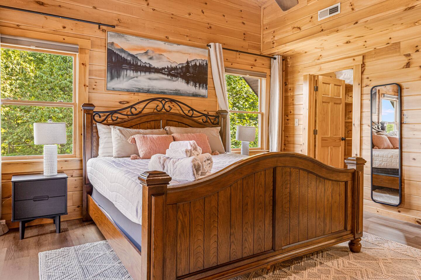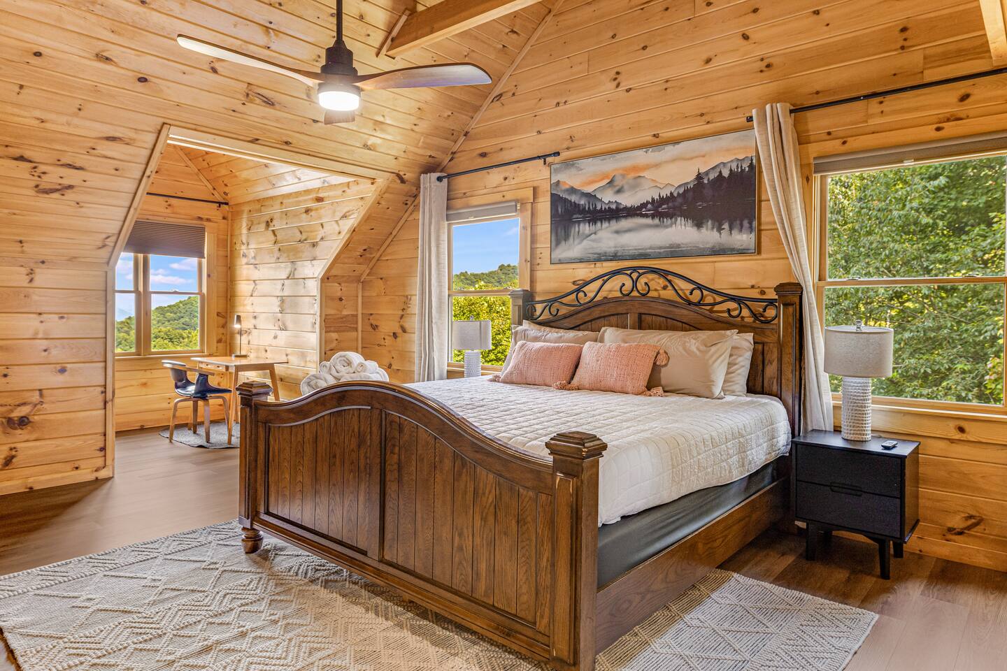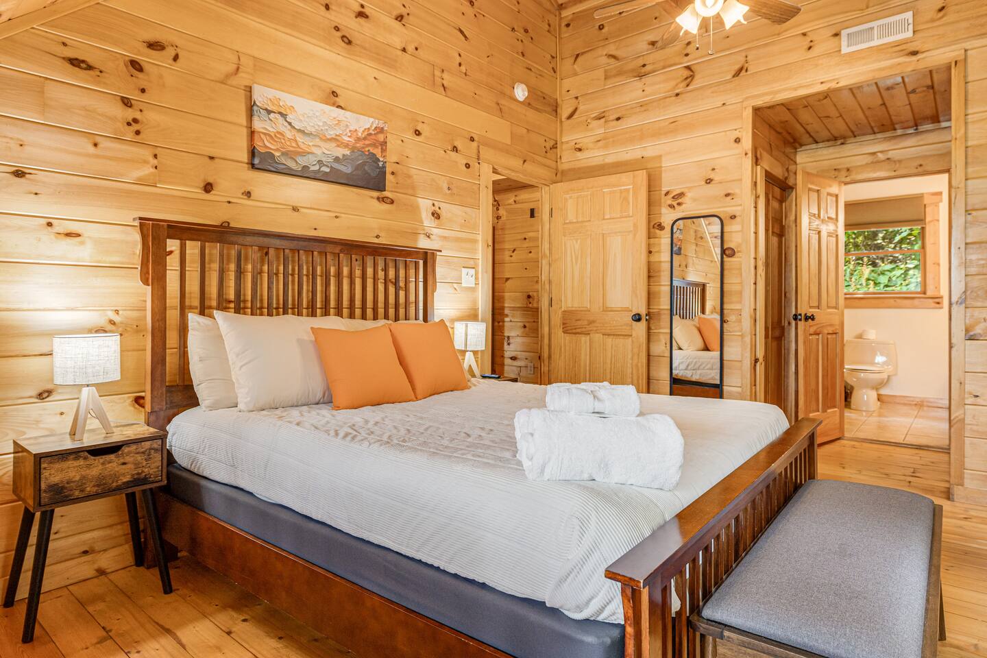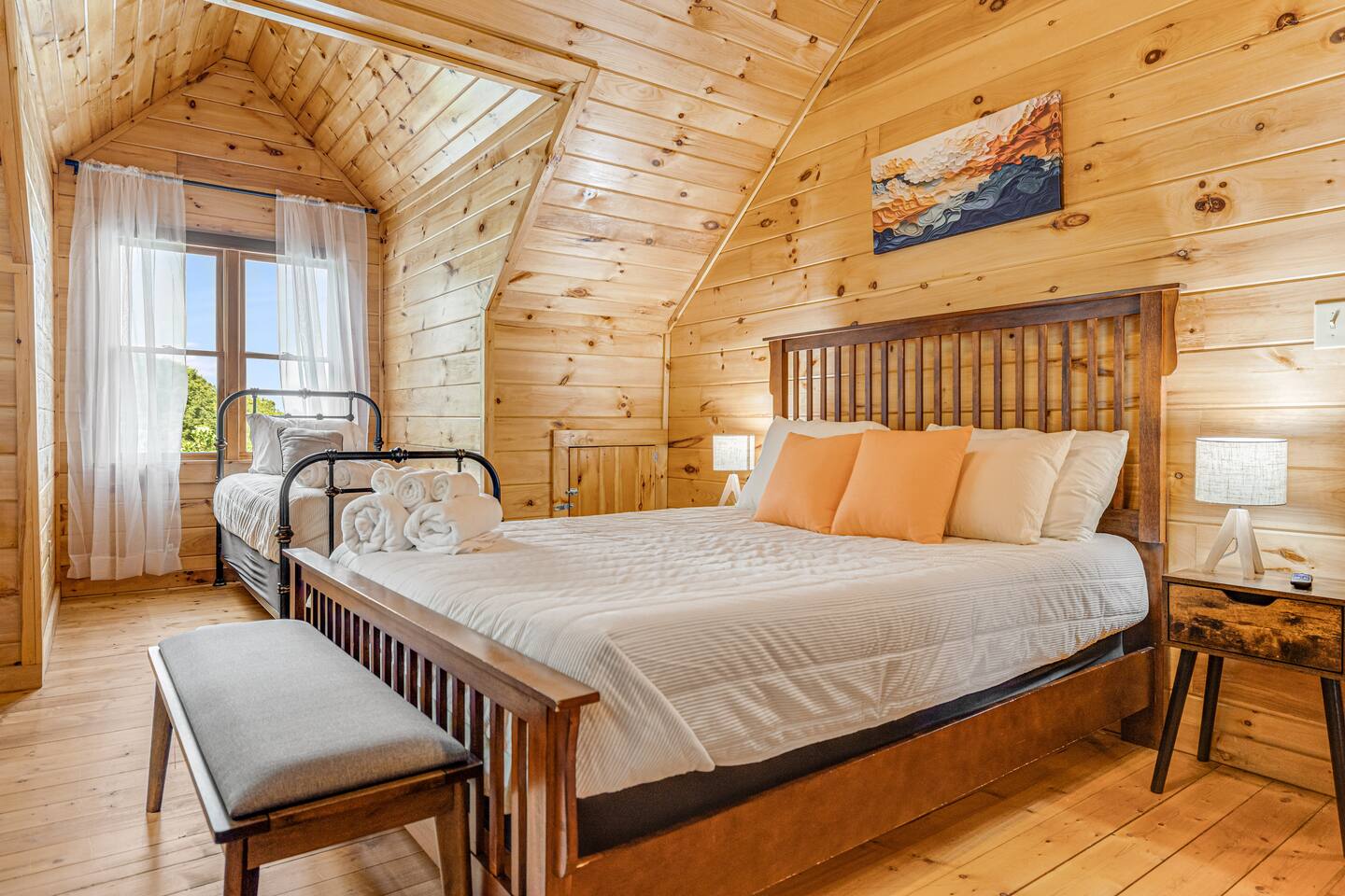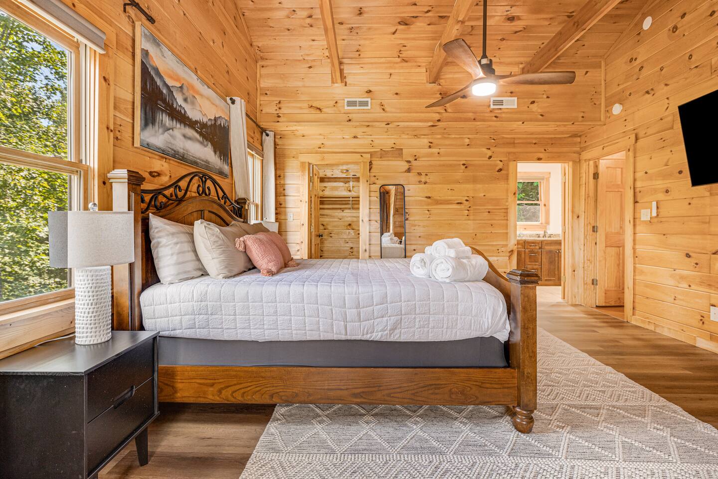 THE SPACE 🏔 PRIVATE MOUNTAIN GETAWAY WITH IDEAL LOCATION Enjoy the beauty of the Blue Ridge Mountains from every window in this luxurious, newly redecorated large wood cabin. The Catawba Falls Lodge delivers: ➤TWO LARGE HOT TUBS spread out in one of two hot tubs. Make one for kids and one for adults OR one for ladies and one for gents OR however you want to divvy up your group in this mountain paradise! ➤SECLUDED & SCENIC: Ultimate privacy with breathtaking mountain views. Please note there is a well-paved but very steep road to get to these spectacular views. Four-wheel drive is NOT necessary, but you will want to gear down before starting your ascent. ➤WATERFALL TRAILS MINUTES FROM YOUR DOORSTEP: Private community trail access to Upper Catawba Falls, Stairstep Falls, and Hemlock Falls ➤IDEAL LOCATION FOR EXPLORING NEARBY TOWNS AND HIKING: Just 20 minutes to Black Mountain & Old Fort, 35 minutes to Asheville, and near Blue Ridge Parkway, Black Mountain and Montreat area hiking like: ✦Evans Knob Trail (3.9 mi, hard) – Rewarding mountain views ✦Point Lookout Trail (7.2 mi, moderate) – A scenic trail perfect for cycling or nature walks, following an old railroad route. ✦Montreat Rainbow Road Trail (3.4 mi, moderate) – A picturesque hike featuring rolling hills and seasonal wildflowers. ✦Bearwallow Mountain Trail (2 mi, moderate) – A quick summit hike with a 360-degree view of the Blue Ridge Mountains. 🏡 SPACIOUS & GROUP-FRIENDLY | PERFECT FOR GATHERINGS With 5 bedrooms and a multitude of bedding configurations, multiple living areas, and an open-concept design, Catawba Falls Lodge is built for comfort, connection, and privacy. Whether you're traveling with friends, extended family, or multiple families, there’s plenty of space for everyone to spread out and enjoy their stay. ➤16 GUESTS SLEEPING ARRANGEMENTS – The lodge can accommodate up to 16 guests in different sleeping arrangements. ➤EXPANSIVE MAIN LIVING AREA – Cozy up on plush seating while taking in floor-to-ceiling mountain views ➤OPEN-CONCEPT DESIGN – Seamless flow between the living room, dining area, and fully equipped kitchen ➤MULTIPLE PRIVATE SLEEPING SPACES – Three ensuite bedrooms + additional spacious rooms with flexible sleeping arrangements ➤LARGE DINING AREA – Gather around the dining table for 13+ guests to share meals and memories ➤PRIVATE UPSTAIRS & DOWNSTAIRS SPACES – Perfect for multi-generational families or guests who prefer separate areas ➤OUTDOOR GATHERING SPOTS – Expansive decks, lots of outdoor furniture, a fire pit, and a hot tub offer more places to relax and reconnect 🧑🤝🧑FAMILY & KID-FRIENDLY ➤GAME ROOM – Pool table, board games, and cozy seating ➤FLEXIBLE SLEEPING SPACES – Queen and twin combos for parents and kids, bunk room for little adventurers! ➤ROLLAWAY BEDS FOR EXTRA CONVENIENCE – Ideal for families who need extra sleeping space ➤EXPANSIVE OUTDOOR SPACE – Safe areas for kids to explore + fire pit for family gatherings 🏡 SPACIOUS BEDROOMS & ENSUITE BATHS | VARIED SLEEPING ARRANGEMENTS With five thoughtfully designed bedrooms and multiple sleeping configurations, Catawba Falls Lodge ensures privacy, comfort, and flexibility for multi-generational families, large groups, and kids. ❤️DOWNSTAIRS ✦BEDROOM 1 – Queen and twin bed (twin mattress in the closet) ✦Bedroom 2 – BUNK ROOM (trundle bed) two Twin bed + queen ❤️MAINLEVEL ✦BEDROOM 3 – King bed + ensuite bathroom ❤️UPSTAIRS ✦BEDROOM 4 – King + en-suite bathroom ✦BEDROOM 5 - Queen + Twin + en-suite Bathroom ✦+ 2 Rollaway bed 🍽️ MODERN KITCHEN & DINING SPACES | PERFECT FOR GATHERINGS At Catawba Falls Lodge, the kitchen and dining areas are designed to bring people together. Whether you're cooking a gourmet meal, sharing a cozy breakfast, or dining under the stars, this space offers the perfect blend of modern convenience and rustic charm. FULLY EQUIPPED KITCHEN | COOK & SOCIALIZE ✦SPACIOUS, OPEN-CONCEPT KITCHEN – The heart of the home, designed for easy cooking and entertaining ✦LARGE ISLAND & BAR SEATING – Perfect for meal prep, casual dining, and gathering with loved ones ✦GRANITE COUNTERTOPS & NATURAL WOOD CABINETRY – A beautiful mix of rustic charm and modern elegance ✦STAINLESS STEEL APPLIANCES – High-end gas stove, oven, microwave, refrigerator, and dishwasher ✦COFFEE STATION – Includes a Keurig, French press, and a selection of coffee essentials ✦FULLY STOCKED WITH COOKWARE – Everything you need, including pots, pans, utensils, oil, and seasonings 🍷 RUSTIC DINING SPACES | INDOOR & OUTDOOR OPTIONS ✦EXPANSIVE INDOOR SEATING – Seats 13+ guests, making it ideal for large groups ✦OUTDOOR DINING AREA – Take your meals outside with patio seating, a BBQ grill, and fresh mountain air 🎲 ENTERTAINMENT & GAME ROOM After a day of exploring, unwind with plenty of entertainment options: ✦EXCLUSIVE LARGE GAME ROOM – Pool table, Arcade Games, Shuffle board, board games, and cozy seating ✦SMART TVS – Nearly every room is equipped with streaming access ✦HIGH-SPEED FIBER OPTIC INTERNET – Stay connected in the mountains ✦OUTDOOR FIRE PIT – The perfect spot for evening s’mores and storytelling 🌲 OUTDOOR LIVING | EXPANSIVE DECKS & PRIVATE TRAILS Take in unobstructed mountain views from multiple outdoor areas, designed for relaxation and adventure. ✦TWO HOT TUBS – Enjoy mountain sunsets from one of two bubbling spas ✦PRIVATE FIRE PIT – Cozy up under the stars with seating for the whole group ✦EXPANSIVE DECKS – Multiple seating areas, rocking chairs, and breathtaking scenery ✦PRIVATE WALKING TRAIL TO UPPER CATAWBA FALLS – Access spectacular waterfall hikes directly from the community! 💻 COZY WORKSPACE | PERFECT FOR REMOTE WORK Catawba Falls Lodge provides a dedicated workspace, so you can stay connected when needed: ✦COMFORTABLE DESK SETUP – Ideal for laptops, reading, 