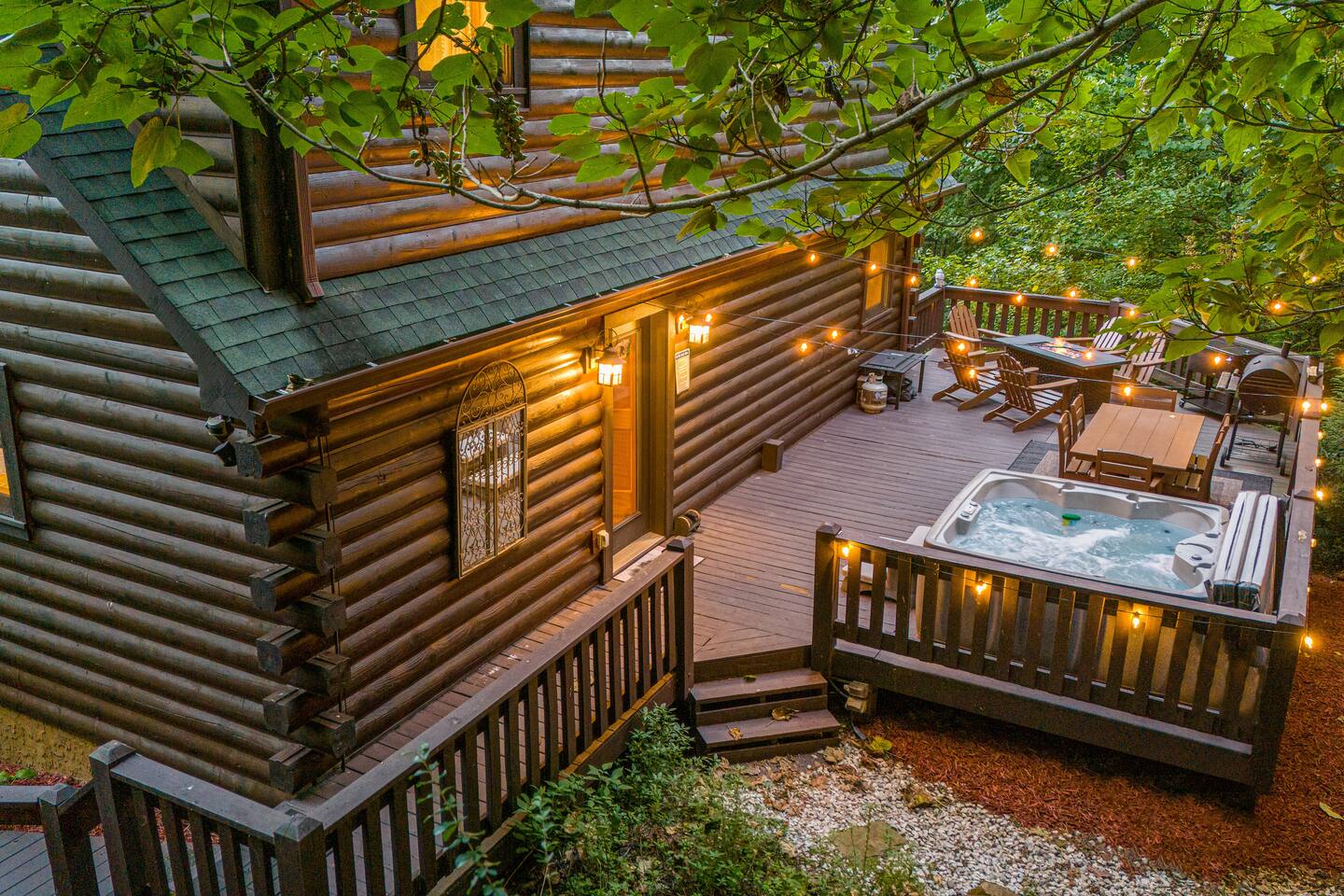 Catawba Falls Lodge is a private mountain retreat in Black Mountain’s gated Catawba Falls Preserve, perfect for families and groups up to 16. This spacious cabin offers stunning mountain views, exclusive trails to waterfalls, and plenty of room to relax. Enjoy two outdoor hot tubs, gather around the fire pit under starry skies, or unwind in cozy living spaces. With unmatched privacy and direct access to nature, it’s the ideal escape for adventure and relaxation alike..