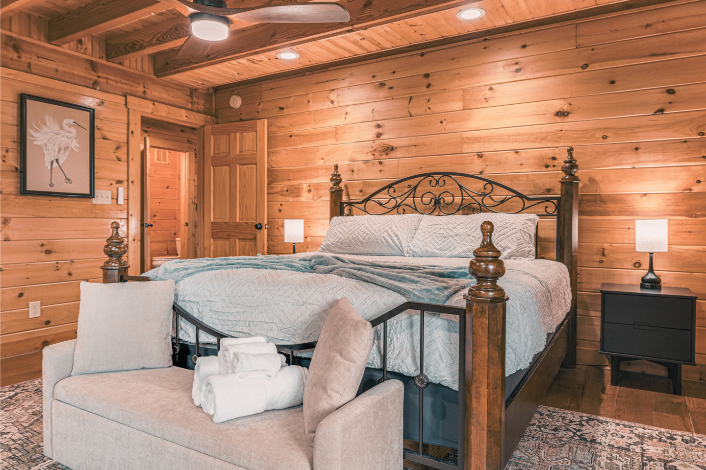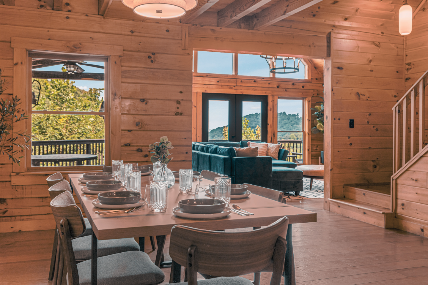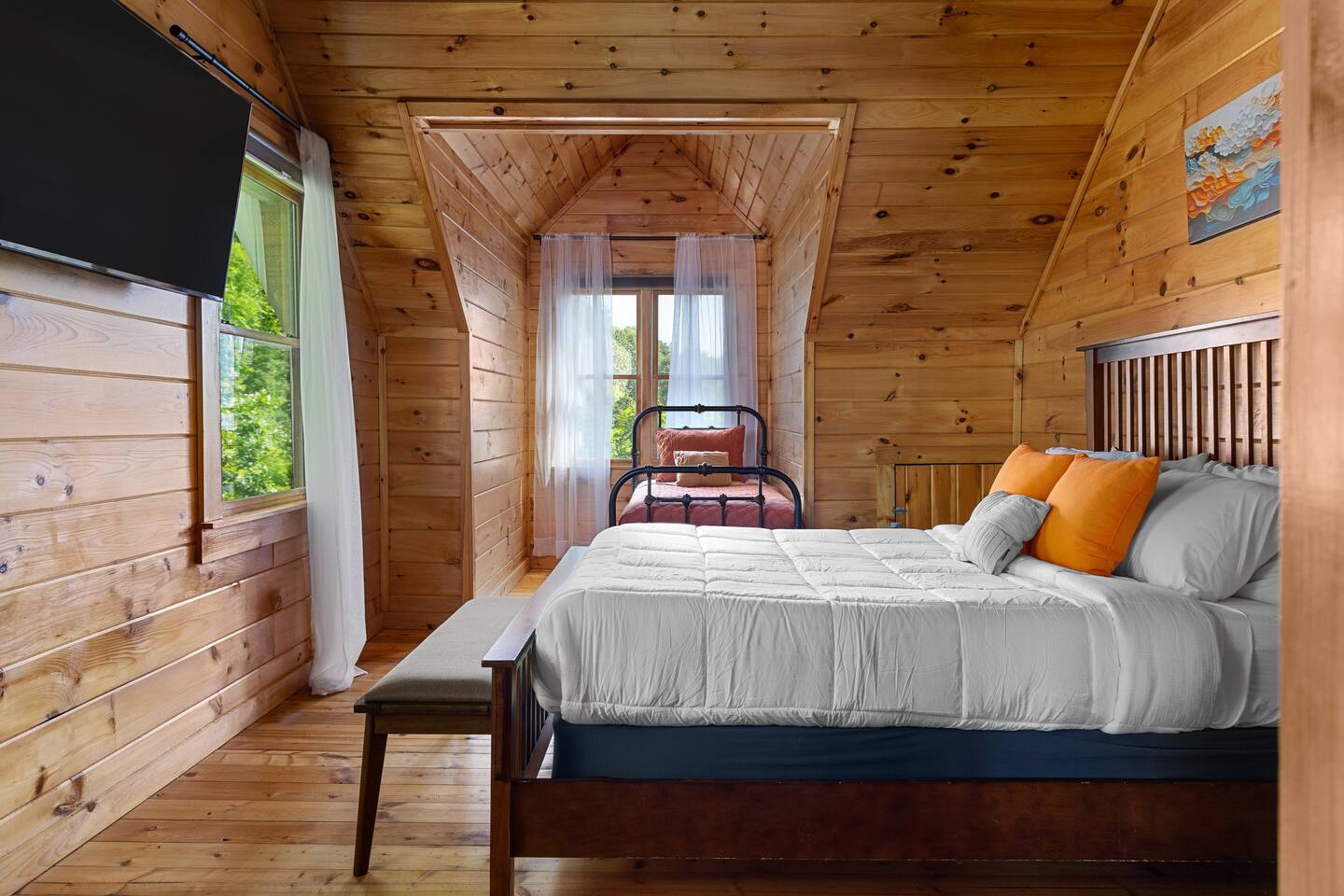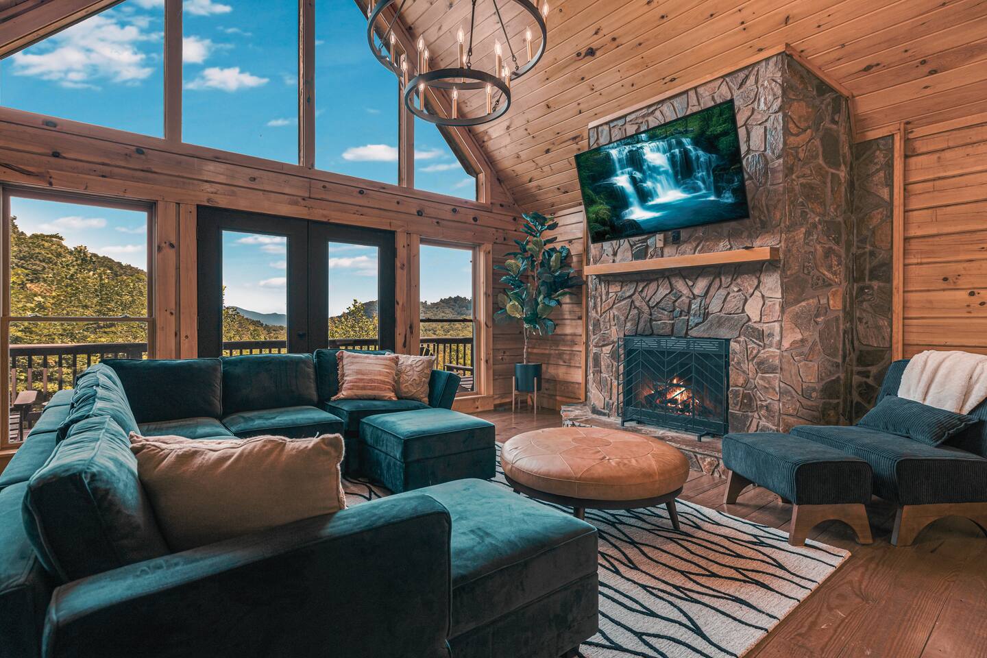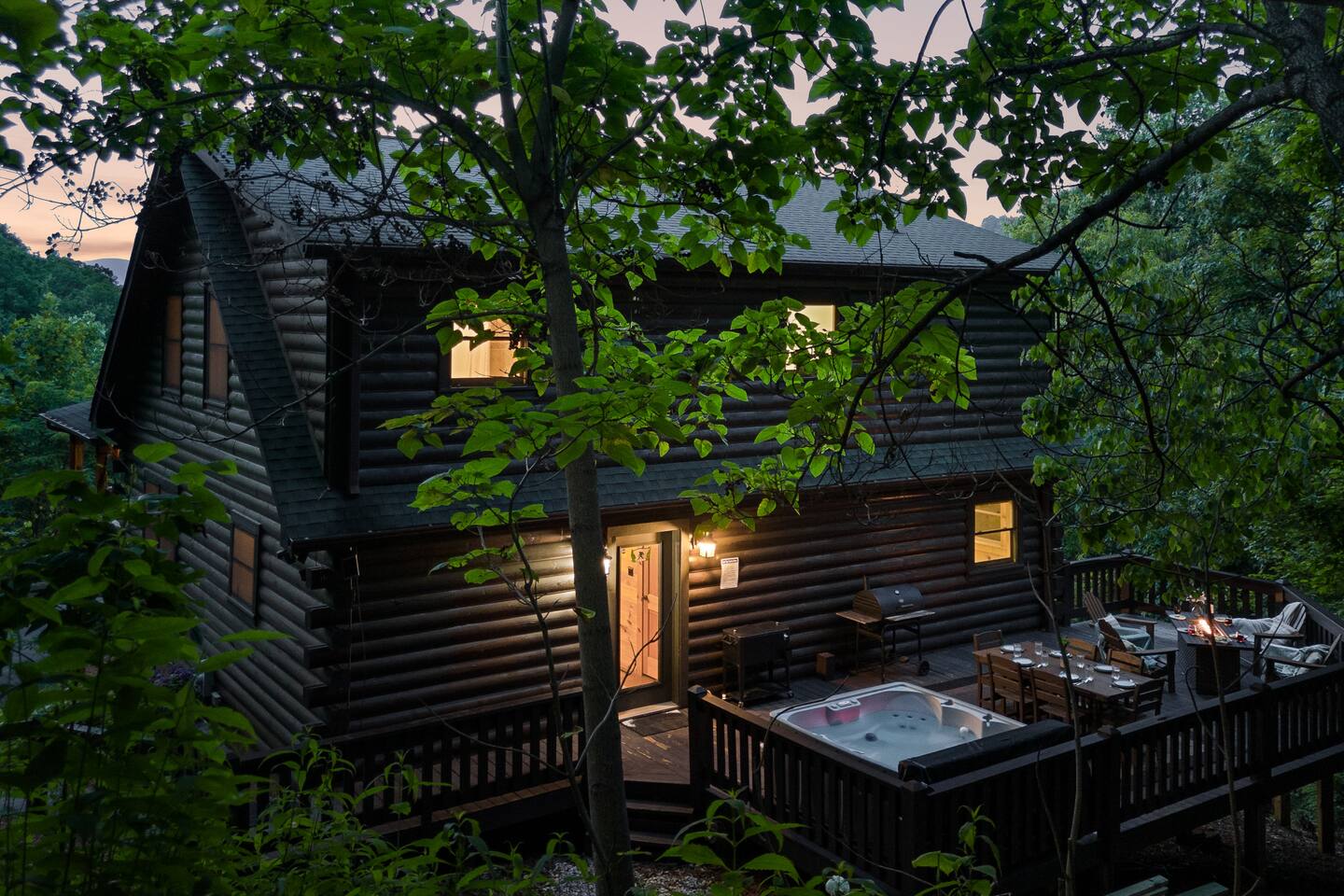 Catawba Falls Lodge is a private mountain retreat in Black Mountain’s gated Catawba Falls Preserve, perfect for families and groups up to 16. This spacious cabin offers stunning mountain views, exclusive trails to waterfalls, and plenty of room to relax. Enjoy two outdoor hot tubs, gather around the fire pit under starry skies, or unwind in cozy living spaces. With unmatched privacy and direct access to nature, it’s the ideal escape for adventure and relaxation alike.