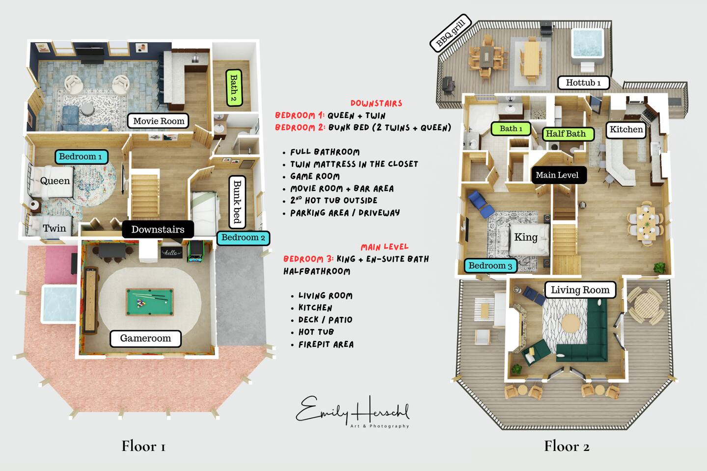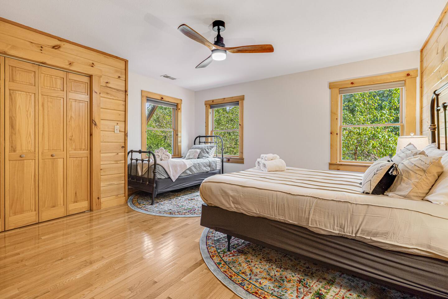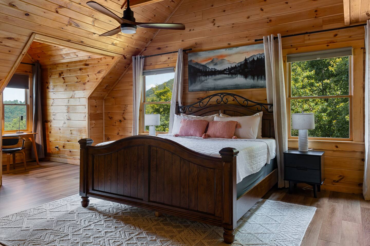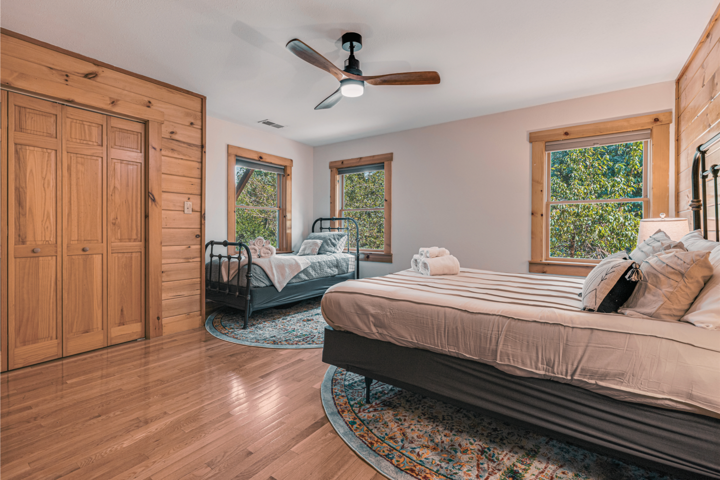 THE SPACE 🏔 PRIVATE MOUNTAIN GETAWAY WITH IDEAL LOCATION Enjoy the beauty of the Blue Ridge Mountains from every window in this luxurious, newly redecorated large wood cabin. The Catawba Falls Lodge delivers: ➤TWO LARGE HOT TUBS spread out in one of two hot tubs. Make one for kids and one for adults OR one for ladies and one for gents OR however you want to divvy up your group in this mountain paradise! ➤SECLUDED & SCENIC: Ultimate privacy with breathtaking mountain views. Please note there is a well-paved but very steep road to get to these spectacular views. Four-wheel drive is NOT necessary, but you will want to gear down before starting your ascent. ➤WATERFALL TRAILS MINUTES FROM YOUR DOORSTEP: Private community trail access to Upper Catawba Falls, Stairstep Falls, and Hemlock Falls ➤IDEAL LOCATION FOR EXPLORING NEARBY TOWNS AND HIKING: Just 20 minutes to Black Mountain & Old Fort, 35 minutes to Asheville, and near Blue Ridge Parkway, Black Mountain and Montreat area hiking like: ✦Evans Knob Trail (3.9 mi, hard) – Rewarding mountain views ✦Point Lookout Trail (7.2 mi, moderate) – A scenic trail perfect for cycling or nature walks, following an old railroad route. ✦Montreat Rainbow Road Trail (3.4 mi, moderate) – A picturesque hike featuring rolling hills and seasonal wildflowers. ✦Bearwallow Mountain Trail (2 mi, moderate) – A quick summit hike with a 360-degree view of the Blue Ridge Mountains. 🏡 SPACIOUS & GROUP-FRIENDLY | PERFECT FOR GATHERINGS With 5 bedrooms and a multitude of bedding configurations, multiple living areas, and an open-concept design, Catawba Falls Lodge is built for comfort, connection, and privacy. Whether you're traveling with friends, extended family, or multiple families, there’s plenty of space for everyone to spread out and enjoy their stay. ➤16 GUESTS SLEEPING ARRANGEMENTS – The lodge can accommodate up to 16 guests in different sleeping arrangements. ➤EXPANSIVE MAIN LIVING AREA – Cozy up on plush seating while taking in floor-to-ceiling mountain views ➤OPEN-CONCEPT DESIGN – Seamless flow between the living room, dining area, and fully equipped kitchen ➤MULTIPLE PRIVATE SLEEPING SPACES – Three ensuite bedrooms + additional spacious rooms with flexible sleeping arrangements ➤LARGE DINING AREA – Gather around the dining table for 13+ guests to share meals and memories ➤PRIVATE UPSTAIRS & DOWNSTAIRS SPACES – Perfect for multi-generational families or guests who prefer separate areas ➤OUTDOOR GATHERING SPOTS – Expansive decks, lots of outdoor furniture, a fire pit, and a hot tub offer more places to relax and reconnect 🧑🤝🧑FAMILY & KID-FRIENDLY ➤GAME ROOM – Pool table, board games, and cozy seating ➤FLEXIBLE SLEEPING SPACES – Queen and twin combos for parents and kids, bunk room for little adventurers! ➤ROLLAWAY BEDS FOR EXTRA CONVENIENCE – Ideal for families who need extra sleeping space ➤EXPANSIVE OUTDOOR SPACE – Safe areas for kids to explore + fire pit for family gatherings 🏡 SPACIOUS BEDROOMS & ENSUITE BATHS | VARIED SLEEPING ARRANGEMENTS With five thoughtfully designed bedrooms and multiple sleeping configurations, Catawba Falls Lodge ensures privacy, comfort, and flexibility for multi-generational families, large groups, and kids. ❤️DOWNSTAIRS ✦BEDROOM 1 – Queen and twin bed (twin mattress in the closet) ✦Bedroom 2 – BUNK ROOM (trundle bed) two Twin bed + queen ❤️MAINLEVEL ✦BEDROOM 3 – King bed + ensuite bathroom ❤️UPSTAIRS ✦BEDROOM 4 – King + en-suite bathroom ✦BEDROOM 5 - Queen + Twin + en-suite Bathroom ✦+ 2 Rollaway bed 🍽️ MODERN KITCHEN & DINING SPACES | PERFECT FOR GATHERINGS At Catawba Falls Lodge, the kitchen and dining areas are designed to bring people together. Whether you're cooking a gourmet meal, sharing a cozy breakfast, or dining under the stars, this space offers the perfect blend of modern convenience and rustic charm. FULLY EQUIPPED KITCHEN | COOK & SOCIALIZE ✦SPACIOUS, OPEN-CONCEPT KITCHEN – The heart of the home, designed for easy cooking and entertaining ✦LARGE ISLAND & BAR SEATING – Perfect for meal prep, casual dining, and gathering with loved ones ✦GRANITE COUNTERTOPS & NATURAL WOOD CABINETRY – A beautiful mix of rustic charm and modern elegance ✦STAINLESS STEEL APPLIANCES – High-end gas stove, oven, microwave, refrigerator, and dishwasher ✦COFFEE STATION – Includes a Keurig, French press, and a selection of coffee essentials ✦FULLY STOCKED WITH COOKWARE – Everything you need, including pots, pans, utensils, oil, and seasonings 🍷 RUSTIC DINING SPACES | INDOOR & OUTDOOR OPTIONS ✦EXPANSIVE INDOOR SEATING – Seats 13+ guests, making it ideal for large groups ✦OUTDOOR DINING AREA – Take your meals outside with patio seating, a BBQ grill, and fresh mountain air 🎲 ENTERTAINMENT & GAME ROOM After a day of exploring, unwind with plenty of entertainment options: ✦EXCLUSIVE LARGE GAME ROOM – Pool table, Arcade Games, Shuffle board, board games, and cozy seating ✦SMART TVS – Nearly every room is equipped with streaming access ✦HIGH-SPEED FIBER OPTIC INTERNET – Stay connected in the mountains ✦OUTDOOR FIRE PIT – The perfect spot for evening s’mores and storytelling 🌲 OUTDOOR LIVING | EXPANSIVE DECKS & PRIVATE TRAILS Take in unobstructed mountain views from multiple outdoor areas, designed for relaxation and adventure. ✦TWO HOT TUBS – Enjoy mountain sunsets from one of two bubbling spas ✦PRIVATE FIRE PIT – Cozy up under the stars with seating for the whole group ✦EXPANSIVE DECKS – Multiple seating areas, rocking chairs, and breathtaking scenery ✦PRIVATE WALKING TRAIL TO UPPER CATAWBA FALLS – Access spectacular waterfall hikes directly from the community! 💻 COZY WORKSPACE | PERFECT FOR REMOTE WORK Catawba Falls Lodge provides a dedicated workspace, so you can stay connected when needed: ✦COMFORTABLE DESK SETUP – Ideal for laptops, reading, 