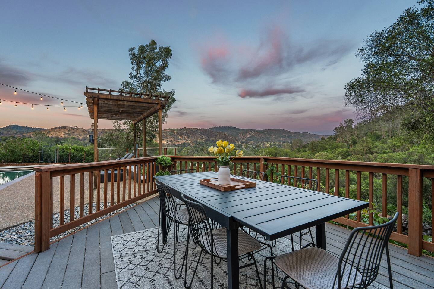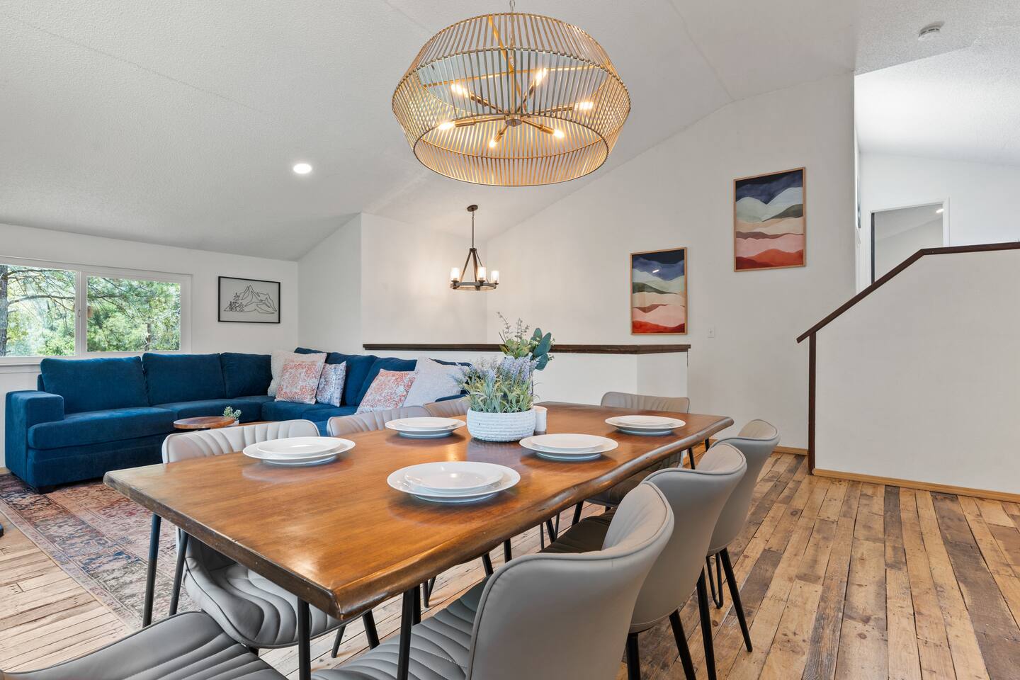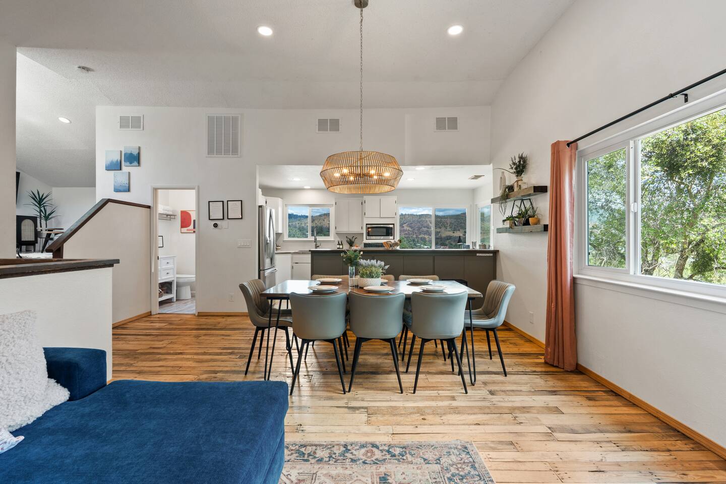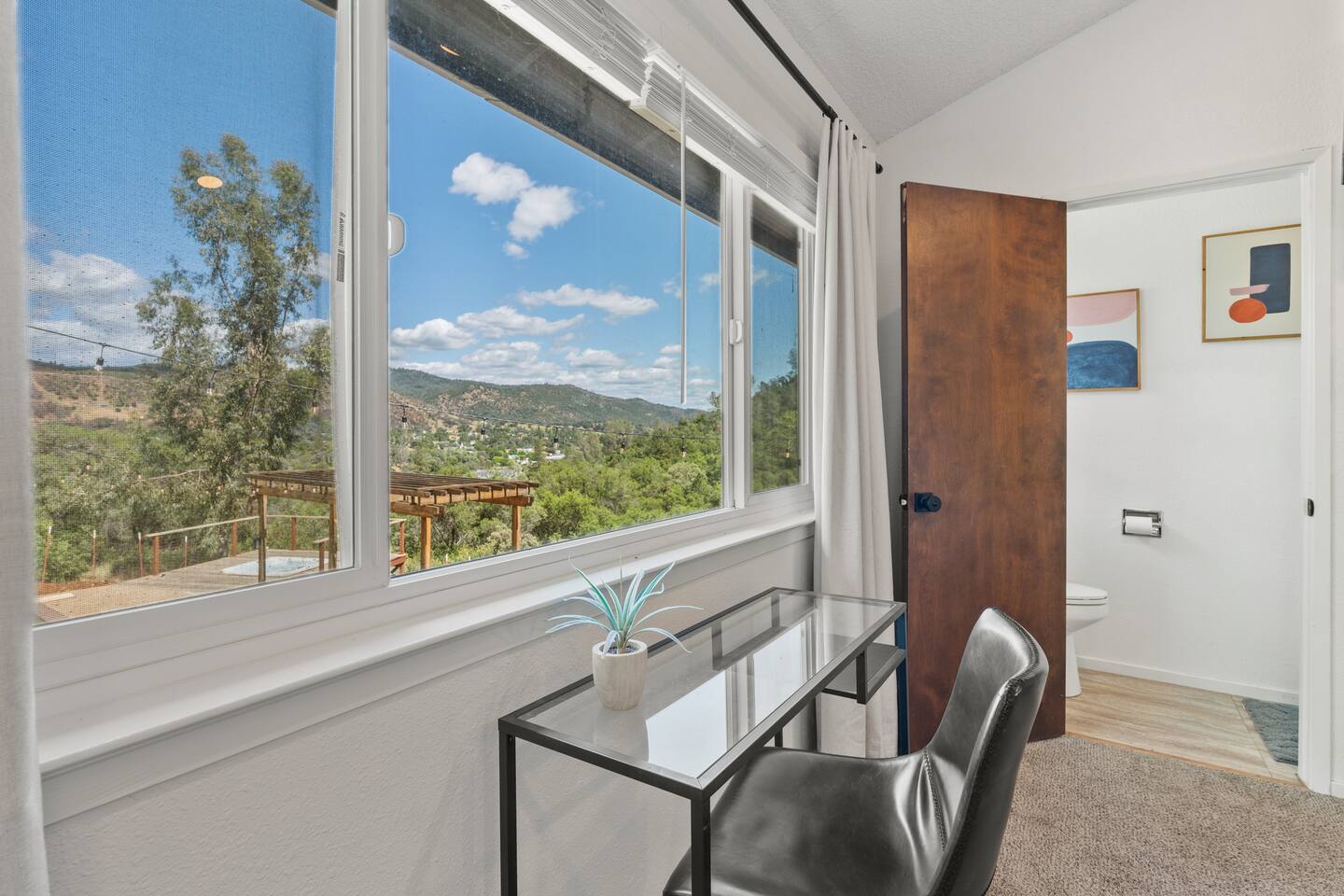 Welcome to Yosemite Oasis! Modern mountain retreat with private pool and hot tub just 10 minutes from Mariposa Park, CA. Perfect for families and groups, this stylish home offers comfort, views, and easy access to Yosemite. 🔥 Pool & Hot Tub – Relax in your own private pool and soak under the stars in the bubbling hot tub. 📍 Great Location – Only 45 minutes to Yosemite National Park and 10 minutes to Historic town of Mariposa with many locally owned shops and restaurants. 🏡 Togetherness with Built-in Privacy – Spacious, modern, and fully equipped for a comfortable group stay featuring 3 living areas w/ comfortable couches and Streaming TVs, and 2 dining areas. 🌄 Views – Enjoy panoramic mountain scenery from the backyard and living spaces. 🎮 Game Area – Enjoy friendly competition with a fast foosball machine and ping pong table located in the second living area on the 2nd floor—perfect for family fun or a game night with friends. 🛏️ BEDROOMS & SLEEPING ARRANGEMENTS- SLEEPS 8 Each bedroom is a uniquely themed retreat, featuring luxurious bedding and carefully curated design elements that create a welcoming and stylish atmosphere. ➤BEDROOM 1 – King Bed and Queen Sofa bed (Sleeps 4) - Top Floor This bedroom offers a king bed and floor futon with an ensuite half-bathroom. It features a TV for entertainment, a dedicated workstation perfect for remote work, and a ceiling fan to keep the room cool and comfortable. Conveniently located on the fourth floor next to the second living area, this room combines functionality with relaxation. ➤BEDROOM 2 – Queen Bed (Sleeps 2) - Bottom Floor Equipped with a [queen] bed that sleeps 2 guests, this bedroom includes both a ceiling fan and air conditioning to ensure optimal comfort year-round. Situated on the bottom floor it provides a cool and restful retreat. ➤BEDROOM 3 – Double bed (sleeps 2) – Bottom Floor This room features a [double bed size] bed suitable for 2 guests and includes a practical workstation for productivity. Located on the bottom floor, it’s designed for comfort and convenience. 🌅 OUTDOOR SPACE Relax and unwind on the spacious patio and pool area overlooking the gorgeous copper colored Sierra Mountains. The space features: ➤HOT TUB Relax and unwind in a private hot tub that seats 6, perfect for soothing muscles after a day of adventure. ➤POOL Take a refreshing dip in the sparkling pool, ideal for both fun and relaxation under the sun. The pool is ACCESSIBLE for guest use but please note it is not heated. ➤OUTDOOR DINING Dine in style surrounded by nature with a spacious outdoor setup perfect for shared meals, sunset toasts, and memorable moments. ➤SEATING AREAS Multiple cozy outdoor seating areas provide the perfect space for lounging, reading, or enjoying conversations. ➤INCREDIBLE MOUNTAIN VIEWS Take in breathtaking panoramic mountain views that elevate your stay and connect you with nature in the Sierras. 🏡 TOGETHERNESS WITH BUILT-IN PRIVACY Traveling together makes memories, but having a little private space keeps you coming back together! This house is perfect for both featuring: ➤THREE LIVING AREAS Three living areas with streaming TVs. One located near the kitchen on the main floor, one near the top floor king bedroom, and one on the bottom floor with the pool and patio area. ➤GAME ROOM Challenge your family or friends to a game of ping pong or foosball! ➤TWO DINING AREAS The main dining area on the third floor seats 12. But if you want to enjoy a quick meal downstairs near the pool there is seating for 6. 🍳 KITCHEN AND DINING - Main Floor ➤FULLY EQUIPPED KITCHEN Enjoy this fully stocked kitchen surrounded by large picture windows overlooking the surrounding mountains. Here guests can cook their own meals, featuring an oven, microwave, gas range waffle maker, dishwasher and all essential cookware and utensils for convenient home-style cooking. ➤MAIN DINING AREAS (SEATS 12) Enjoy meals at the formal dining table surrounded by large pictures windows with seating for 8 guests—ideal for shared meals, conversation, or working remotely. If you need a little more space, spread out to the 4 bar stools at the kitchen high top counter. 🌅 AMENITIES FOR A COMFORTABLE STAY ➤WASHER In-unit washer available for guest use—perfect for longer stays or freshening up clothes during your trip. ➤FREE PARKING ON PREMISES Convenient, no-cost parking space located directly on the property for easy access and peace of mind. ➤AIR CONDITIONING Stay cool and comfortable with efficient air conditioning throughout the space. ➤TV Flat-screen TV with access to streaming services and local channels for relaxing entertainment. ➤WIFI High-speed wireless internet for browsing, streaming, and staying connected during your stay. ➤DEDICATED WORKSPACES (2) Quiet and comfortable area equipped for working remotely, ideal for business travelers or digital nomads. 🐾 PET-FRIENDLY PARADISE *Pets allowed - $125 per pet per stay - max of 2 dogs